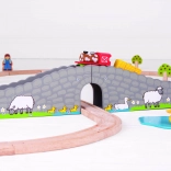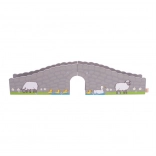Zaprojektowany w szarym kolorze, przypominający kamienny most z ilustracjami zwierząt farmy dla autentycznych wrażeń.