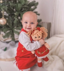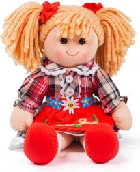 Lalka materiałowa Mandie to pięknie kolorowa i mięciutka towarzyszka dla najmłodszych. Ciepłe tkaniny, delikatne włoski z przędzy i uroczy uśmiech zachęcają do przytulania oraz zabawy. Stylowa, kraciasta sukienka z haftem i koronką nadaje lalce tradycyjnego uroku, który dzieci uwielbiają.