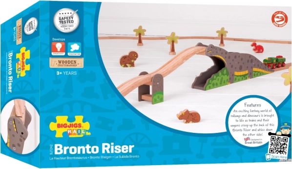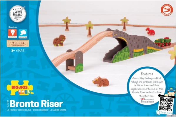 Odkryj zabawny most dinozaura do drewnianych kolejek, gdzie kolej spotyka się z prehistoryczną przygodą. Pociąg przejeżdża po grzbiecie „brontozaura” i pod nim, co dodaje zabawie napięcia, wyobraźni i trenuje małą motorykę. Kompatybilny z większością drewnianych kolejek dostępnych na rynku.