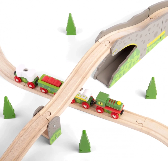 Podaruj dzieciom oryginalny element do ich kolejki – most dinozaura, który zamieni każdą przejażdżkę w przygodę. Solidna drewniana konstrukcja z motywem dinozaura pozwala składom przejeżdżać po grzbiecie i przez tunel, co zwiększa różnorodność torów i wspiera kreatywną zabawę.