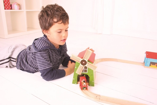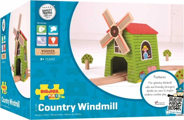 Rozszerz swoją drewnianą kolejkę o interaktywny wiatrak od Bigjigs Rail. Dzieci przejeżdżają pociągiem przez wiatrak i obracają ruchomymi łopatkami, rozwijając wyobraźnię, małą motorykę i koordynację. Kompatybilny z większością drewnianych kolejek na rynku, wykonany z wysokiej jakości drewna i spełnia europejskie normy bezpieczeństwa. Pociąg ani inne akcesoria nie są częścią zestawu.