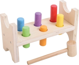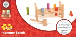 Ta klasyczna drewniana zatłuczka marki Bigjigs Baby zachwyci dzieci prostą zasadą – kołeczki wbija się młoteczkiem w otwory, następnie wystarczy odwrócić ławeczkę i zabawa zaczyna się od nowa. Intensywne kolory stymulują percepcję i wspierają skupienie.