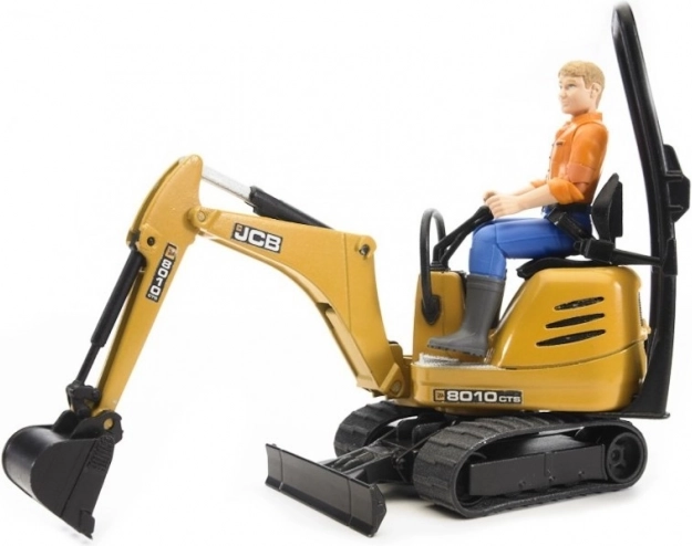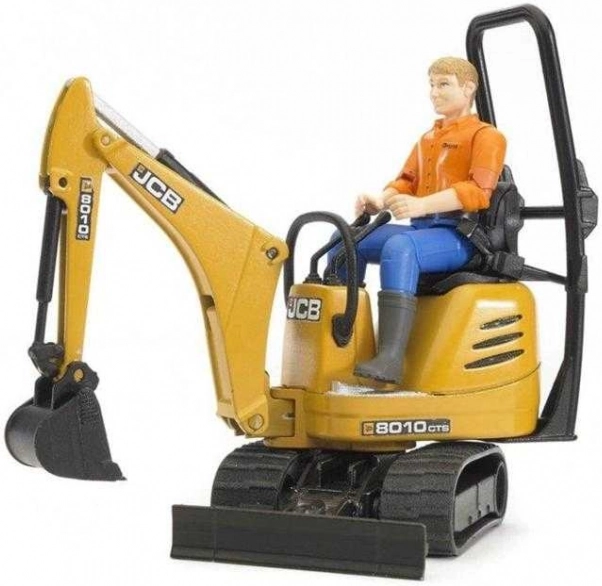 Przyczepa z opuszczanymi rampami pozwala na łatwy transport żółtej minikoparki wyposażonej w obrotową kabinę oraz funkcjonalne ramię z łyżką. Minikoparka jest w pełni kompatybilna z innymi figurkami Bworld, co czyni ją doskonałym dodatkiem do każdego dziecięcego placu budowy.