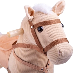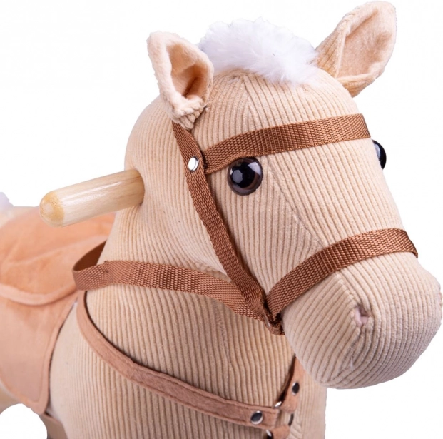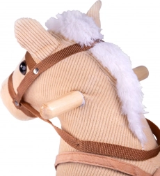 Siodło i uzda z delikatnego sztruksu zwiększają komfort i zachęcają do dotyku. Dziecko cieszy się jazdą dłużej i bezpieczniej.