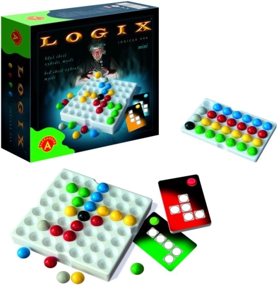 Logiczna gra dla 2–4 graczy od 10 lat. Każdy gracz układa z kolorowych kulek „tajny kod”. Karty określają kształt i liczbę kulek tajnego kodu. Buduj swój kod i burz przy tym kod przeciwnika. Jeśli chcesz wygrać, myśl – pierwszy kompletny kod wygrywa! Na początku gry każdy gracz losuje kartę z tajnym kodem rozmieszczenia kulek. W trakcie rozgrywki gracze starają się dokładaniem lub przesuwaniem kulek ułożyć swój kod. Celem gry jest jak najszybsze przesuwanie i dodawanie kulek na planszy zgodnie z wzorem (kodem) na wylosowanej karcie. Wykorzystaj kulki przeciwnika i zniszcz jego kod, zanim go w pełni ukończy. Kolor pokazany na karcie wyznacza kolor zakazany, którego nie wolno użyć. Dołóż ostatnią kulkę do swojego wzoru, krzyknij: „Mistrz Logix!” i wygrywasz. Opakowanie zawiera: planszę do gry, kolorowe kulki (zielone, niebieskie, żółte, czerwone, szare, czarne), zasobnik na kulki, karty z tajnymi kodami, polską i słowacką instrukcję. Główne cechy: rozwija logiczne myślenie dzieci, odpowiednia dla dzieci od 10 lat. Dokumentacja: instrukcja gry PL, instrukcja gry SK