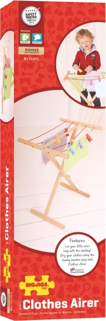 Szukasz idealnego dodatku do dziecięcej sali zabaw? Drewniana suszarka na pranie Bigjigs Toys została zaprojektowana tak, aby zapewnić dzieciom godziny zabawy oraz rozwijać ich motorykę małą. Kiedy małe dzieci udają suszenie prania jak ich rodzice, nie tylko się bawią, ale także uczą o codziennych czynnościach.