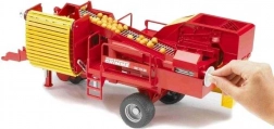 Ten duży i szczegółowo opracowany model kombajnu do ziemniaków obejmuje istotne elementy funkcjonalne, takie jak przenośnik selekcyjny, którym łatwo sterujesz za pomocą ręcznej korbki. Ziemniaki są transportowane z taśmy bezpośrednio do zasobnika, którego ustawienie można regulować według potrzeb.