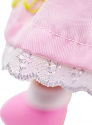 Lalka wykonana jest z miękkich materiałów tekstylnych, dzięki czemu stanowi idealną towarzyszkę dla najmłodszych dzieci.
