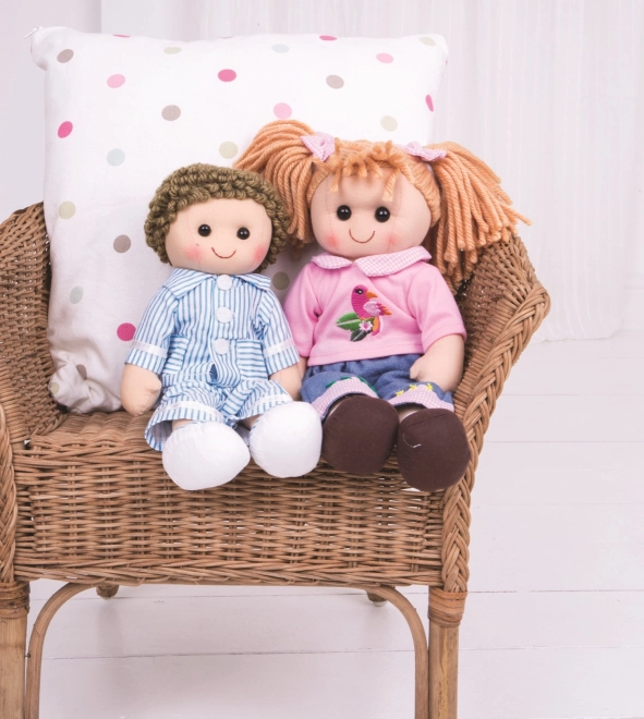 Lalka nosi kolorowe, starannie uszyte ubranka, a do serii BIGJIGS TOYS można dokupić dodatkowe stroje w odpowiednim rozmiarze.
