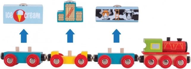 Drewniany pociąg towarowy marki Bigjigs Rail dostarcza podstawowe zapasy i wyjątkowe smakołyki, a do tego zawiera 3 odcinki torów ułatwiające rozbudowę trasy. Kompatybilny ze wszystkimi popularnymi drewnianymi kolejkami, wykonany z wysokiej jakości naturalnych materiałów i spełniający europejskie normy bezpieczeństwa. Wspiera wyobraźnię, zręczność i koordynację dzieci od 3. roku życia.