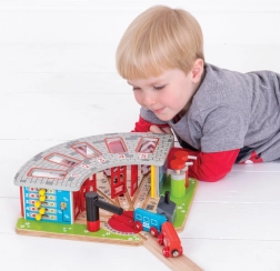 Drewniane depo jest zaprojektowane dla pięciu różnych pociągów i zawiera funkcjonalny obrotnik, co umożliwia łatwe przemieszczanie pociągów między poszczególnymi garażami. System zawiera otwierane drzwi i stację paliw, co przyczynia się do realistycznych wrażeń z zabawy.