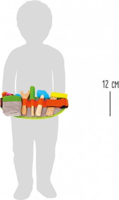 Regulowany pas na narzędzia dla dzieci marki Small Foot jest wyposażony w różnorodne narzędzia do zabawnej i pouczającej zabawy. Dzięki zmiennej długości pasa (41–103 cm) każdy mały majsterkowicz łatwo dopasuje go do siebie. Zestaw zawiera: młotek, śrubokręt, klucz, kątomierz, śruby i nakrętki.