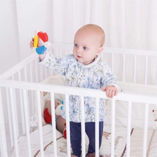 Bigjigs kolorowa drewniana grzechotka rozwija zręczność, rozpoznawanie kolorów i rozwój sensoryczny Twojego dziecka. Każdy kolorowy element można obracać, aż idealnie do siebie pasuje! Wykonana z bezpiecznych dla dzieci materiałów.
