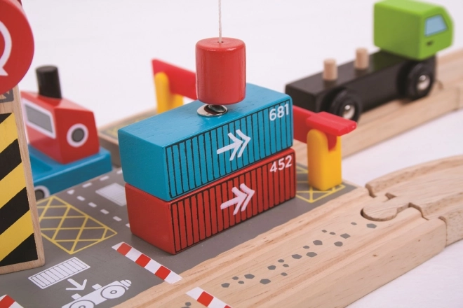 Odkryj świetny drewniany terminal z funkcjonalnym magnetycznym dźwigiem, który przybliży dzieciom świat portów i kolei. Zestaw zawiera drewnianą ciężarówkę z kontenerami oraz solidny dźwig do łatwego załadunku i rozładunku. Całość jest bezpieczna, trwała i zachęca do otwartej zabawy.