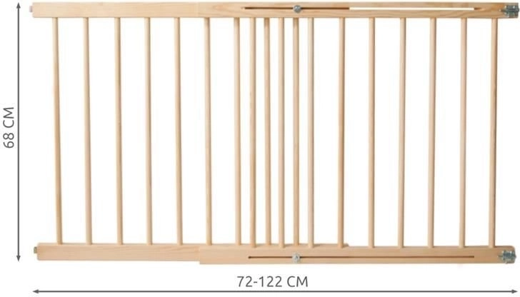 Ta uniwersalna bramka z wysokiej jakości drewna świerkowego została zaprojektowana do bezpiecznego oddzielenia przestrzeni w domu. Szerokość 72–122 cm umożliwia montaż w większości standardowych przejść oraz na schodach. Zaokrąglone krawędzie i precyzyjnie wygładzona powierzchnia zwiększają bezpieczeństwo i komfort codziennego użytkowania.