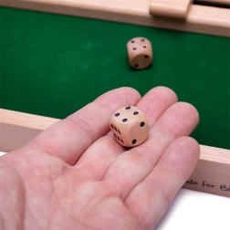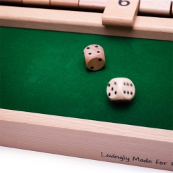 Odkryj ponadczasową rodzinną rozrywkę z grą Shut the Box. Celem jest po rzucie dwiema kostkami opuścić jedną lub dwie płytki tak, aby ich suma odpowiadała wynikowi rzutu. Gra toczy się do momentu, gdy nie można opuścić kolejnych liczb – pozostała suma zapisywana jest jako punkty karne. Wygrywa gracz z najniższym wynikiem.