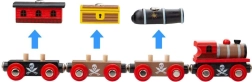 Pirat kari od Bigjigs Rail jest idealnym wyborem dla małych poszukiwaczy przygód. Zestaw zawiera lokomotywę i trzy szczegółowo wykonane wagoniki z klasycznym magnetycznym łączeniem. Kompatybilny ze wszystkimi drewnianymi systemami kolejowymi.