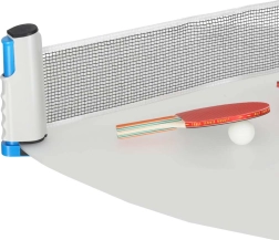 Kompletny zestaw do tenisa stołowego, z którym zaczniesz grać od razu. Wysuwana siatka łatwo mocuje się do niemal każdego stołu, 2 rekreacyjne rakietki zapewniają dobrą kontrolę i szybkość, a 3 piłeczki są gotowe na świetną zabawę w domu i w podróży.