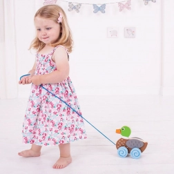 Świetna towarzyszka pierwszych kroków – ciągnięcie za sznureczek trenuje równowagę, koordynację i pewność w chodzeniu, i to w formie zabawy.