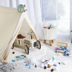 Dzięki ogumowanym kołom jazda jest cicha także na twardych nawierzchniach, dlatego jeździk nadaje się do mieszkania i na chodnik. Retro design wyróżni się w każdym pokoju dziecięcym i wspiera wyobraźnię oraz radość z ruchu.