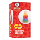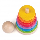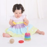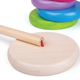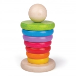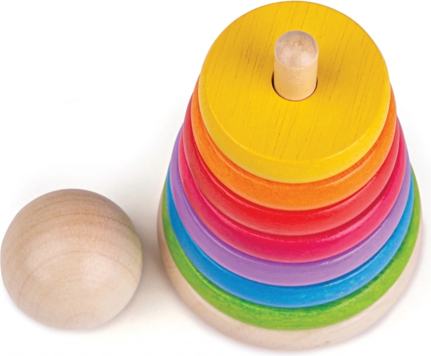 Zabawka zawiera 9 krążków w tęczowych barwach, które urozmaicą każdą zabawę i pomogą w rozróżnianiu kolorów.