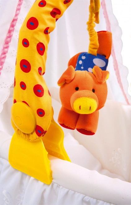 Karuzelę można łatwo przymocować do wózka lub łóżeczka, co zapewnia wygodę i praktyczność.
