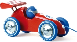 Ten uroczy samochód wyścigowy na sznurek daje dzieciom radość z ruchu, a jednocześnie wspiera ich rozwój motoryczny. Solidna drewniana konstrukcja, łagodne kształty i bezpieczne materiały łączą się z atrakcyjnym wyglądem auta wyścigowego ze skrzydłem i kierowcą.