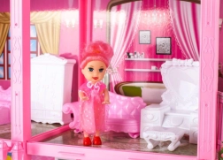 W zestawie znajduje się pełne wyposażenie: łóżko, sofy, foteliki, toaletka, szafa, komoda, lampka i inne. Dzieci mogą dowolnie przestawiać wnętrze.