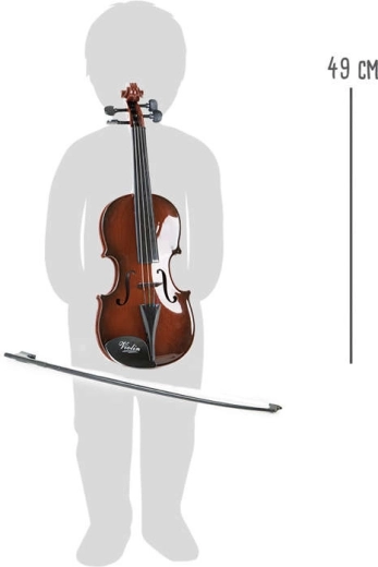 Elegancki drewniany dekor, podstrunnica i struny wiernie odwzorowują wygląd prawdziwych skrzypiec – idealne, by motywować dzieci do muzyki.