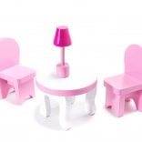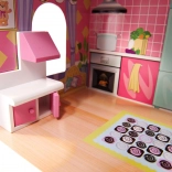 Starannie wyszlifowane elementy zapewniają bezpieczną zabawę bez drzazg. Otwierane drzwiczki kuchennych szafek, bujana kołyska, stół z krzesłami czy szafa pobudzają wyobraźnię i rozwijają małą motorykę oraz umiejętności społeczne podczas wspólnej zabawy i urządzania.