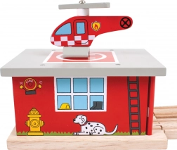 Rozszerz dziecięcy świat kolejek o dynamiczne depo strażackie z lądowiskiem. Szczegółowe nadruki, konstrukcja przelotowa oraz dołączony helikopter zachęcają do emocjonujących historii i misji ratunkowych. Stacja została starannie wykonana z wysokiej jakości drewna i spełnia europejskie normy bezpieczeństwa.