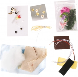 W opakowaniu znajdziesz wszystko, co potrzebne: elementy konstrukcyjne pokoju, części wyposażenia i dekoracje, klej oraz szczegółową instrukcję z ilustracjami. Oświetlenie jest zasilane 2× AAA 1,5 V i 3× LR54 1,5 V (baterie nie są dołączone). Zalecane od 8 lat. Gotowy model ma wymiary 17,1 × 13 × 11,6 cm; opakowanie 25 × 18 × 6 cm.