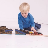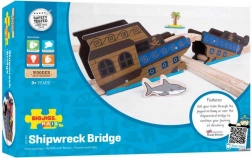 Most wraku statku Bigjigs Rail doda Twojemu kolejowemu światu nutę przygody. Dwa solidne elementy łatwo złożysz w efektowny most lub tunel, dzięki czemu pociągi mogą jeździć po i przez dekorowany wrak. Piracki motyw i morskie fale pobudzają kreatywne opowieści i zapewniają długie godziny zabawy.