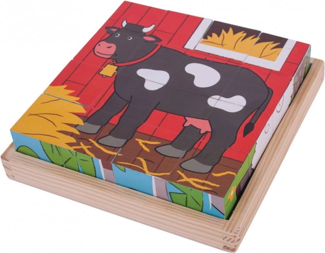Odkryj sprytnie zaprojektowaną drewnianą układankę, w której 16 drewnianych klocków tworzy 6 obrazków z farmy. Dzieci poćwiczą układanie, kolory i kształty, a przy tym rozwijają małą motorykę i koncentrację. Dzięki kompaktowym wymiarom 18 × 18 × 4,2 cm zabawka jest idealna do domu i w podróż. Wykonana z wysokiej jakości drewna z odpowiedzialnych źródeł i spełnia europejskie normy bezpieczeństwa.