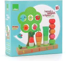 Odkryj zabawną drewnianą zestaw Vilac, który pomaga dzieciom nauczyć się liczyć, rozpoznawać kolory i kształty, a jednocześnie ćwiczyć motorykę małą. Kolorowe elementy warzyw i owoców nakłada się na ponumerowane kołki, a po drzewku przesuwają się koraliki – bezpieczna i wytrzymała konstrukcja jest idealna dla dzieci od 18 miesięcy.