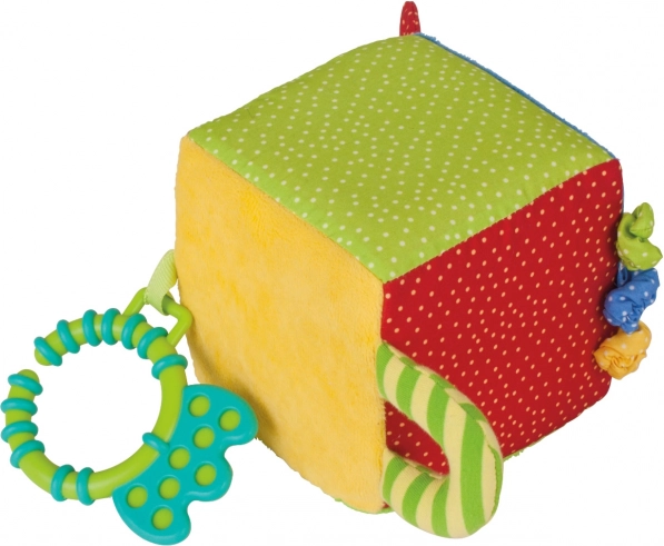 Każda ścianka kostki oferuje inny materiał, wzór i detale, które stymulują dotyk i rozwijają zmysły niemowlęcia.