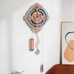 Ten model DIY łączy relaksującą przyjemność składania z praktyczną funkcją. Po złożeniu zegar ścienny staje się elegancką dominantą pomieszczenia – z rzymskimi cyframi, ozdobnymi ornamentami i widocznymi przekładniami, które podkreślają jego vintage’owy charakter.