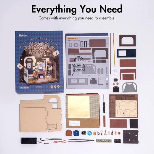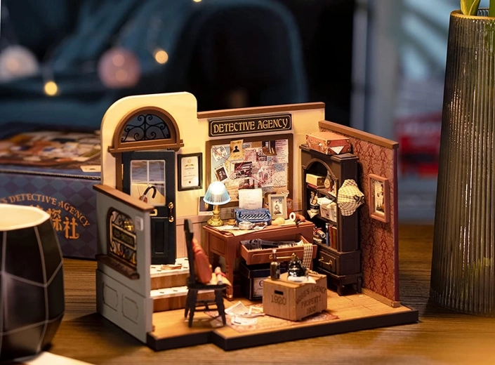 Stwórz własną miniaturę biura detektywistycznego w brytyjskim stylu z linii ROBOTIME ROLIFE Mystic Archives. Ten dopracowany zestaw DIY oferuje oświetlenie LED, mnóstwo realistycznych dodatków oraz łatwiejszy montaż dzięki większemu udziałowi gotowych elementów. Idealny jako prezent, kreatywny relaks i stylowa dekoracja do wnętrza.