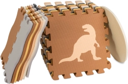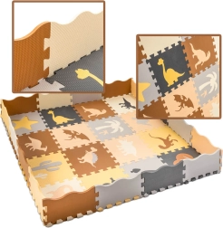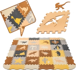 Ta piankowa mata puzzle wspiera rozwój dziecięcej wyobraźni i motoryki. Wyjmowane kształty dinozaurów działają jak zabawny sorter – dzieci trenują rozpoznawanie kształtów i koordynację, wkładając elementy z powrotem na miejsce. Kontrastowe kolory oraz przyjemne, teksturyzowane wykończenie powierzchni stymulują wzrok i dotyk.