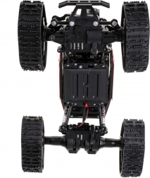 Terenowy model RC 4x4 z możliwością wymiany kół na gąsienice poradzi sobie z kamieniami, piaskiem i śniegiem. Dzięki częstotliwości 2,4 GHz, niezależnemu zawieszeniu i napędowi na wszystkie koła oferuje pewne sterowanie i świetną trakcję. Czas jazdy do 15 minut, zasięg ok. 60 m oraz pistoletowy kontroler dla wygodnego prowadzenia.