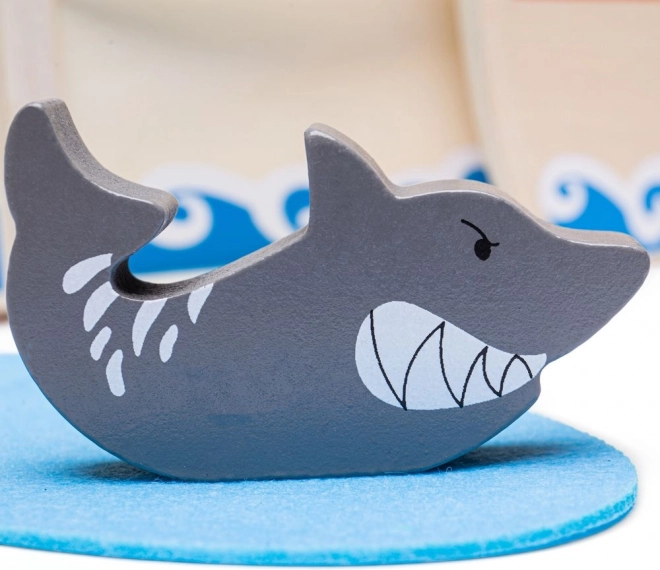 Ten drewniany zestaw statku pirackiego zawiera wszystko, czego małe piraty potrzebują do swoich przygód. Pakiet zawiera kapitana, dwóch piratów, statek, kotwicę, skrzynię ze skarbami i rekina. Wszystkie elementy gry można wygodnie umieścić w statku, co jest idealne do podróżowania i łatwego przenoszenia.