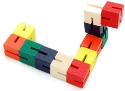 Kolorowa drewniana łamigłówka w kształcie węża oferuje niezliczone możliwości, dzięki którym dzieci mogą odkrywać swoją kreatywność. Obracając i przekładając poszczególne segmenty, rozwijają zręczność i małą motorykę. Zabawka jest idealna w podróży: dzięki kieszonkowemu rozmiarowi dzieci mogą mieć ją zawsze pod ręką. Drewniane kostki są trwale połączone elastyczną gumą, co gwarantuje trwałość i bezpieczeństwo.