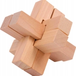 Odkryj wyzwanie z zestawem 4 naturalnych drewnianych łamigłówek, które ćwiczą zręczność i koncentrację.