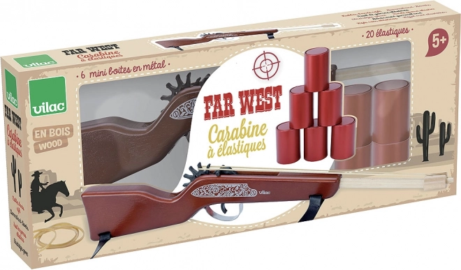 Zostań małym kowbojem z tą stylową drewnianą strzelbą VILAC! Zestaw zawiera strzelbę na gumki, 20 gumek oraz 6 mini puszek do zabawnego i bezpiecznego strzelania. Świetna zabawa w celność, rozwój motoryki i ducha rywalizacji dla dzieci od 5 lat.