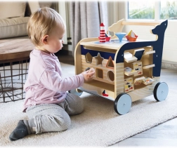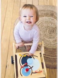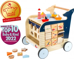 Wyrusz na odkrywanie z drewnianym chodzikiem w kształcie wieloryba. Ten chodzik nie tylko pomaga dzieciom w stawianiu pierwszych kroków, ale także zapewnia różne interaktywne zabawki, które wspierają rozwój motoryki.