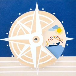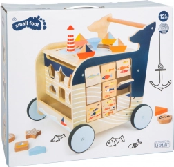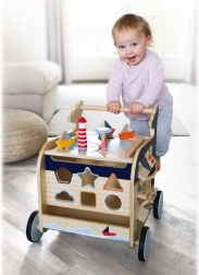 • Morski świat: Chodzik inspirowany jest żeglugą i zawiera aktywności takie jak sortowanie kształtów, obracane obrazki oraz tablicę do rysowania.