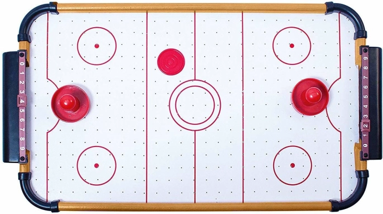 Stół mieści się na większości blatów i zapewnia pełnowymiarowe wrażenia z air hokeja bez potrzeby dużej przestrzeni.