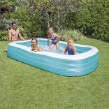 - Łatwe nadmuchiwanie i opróżnianie: Basen wyposażony jest w trzy komory powietrzne z zaworami do szybkiego nadmuchiwania i opróżniania.