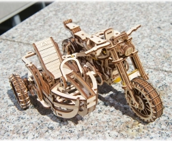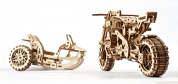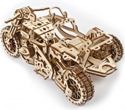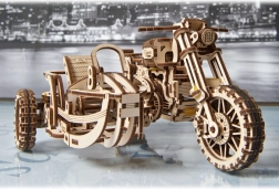 Ugears puzzle 3D motocykl z wózkiem bocznym – mechaniczny drewniany model