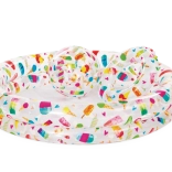 Ciesz się latem w ogrodzie z tym kompaktowym dziecięcym basenem z owocowym wzorem i praktycznym zestawem: dmuchany basen, koło do pływania oraz piłka plażowa. Wykonany z trwałego, testowanego winylu, z zaworem zwrotnym dla bezpiecznego użytkowania. Idealny do orzeźwienia i wodnych zabaw dla dzieci od 2 lat (zawsze pod nadzorem osoby dorosłej).